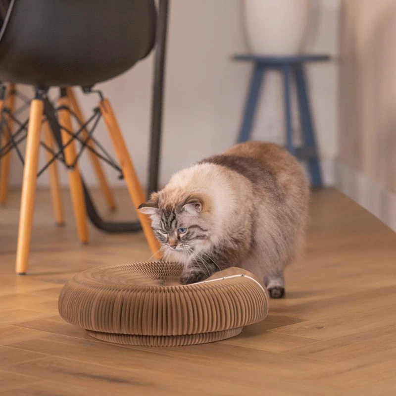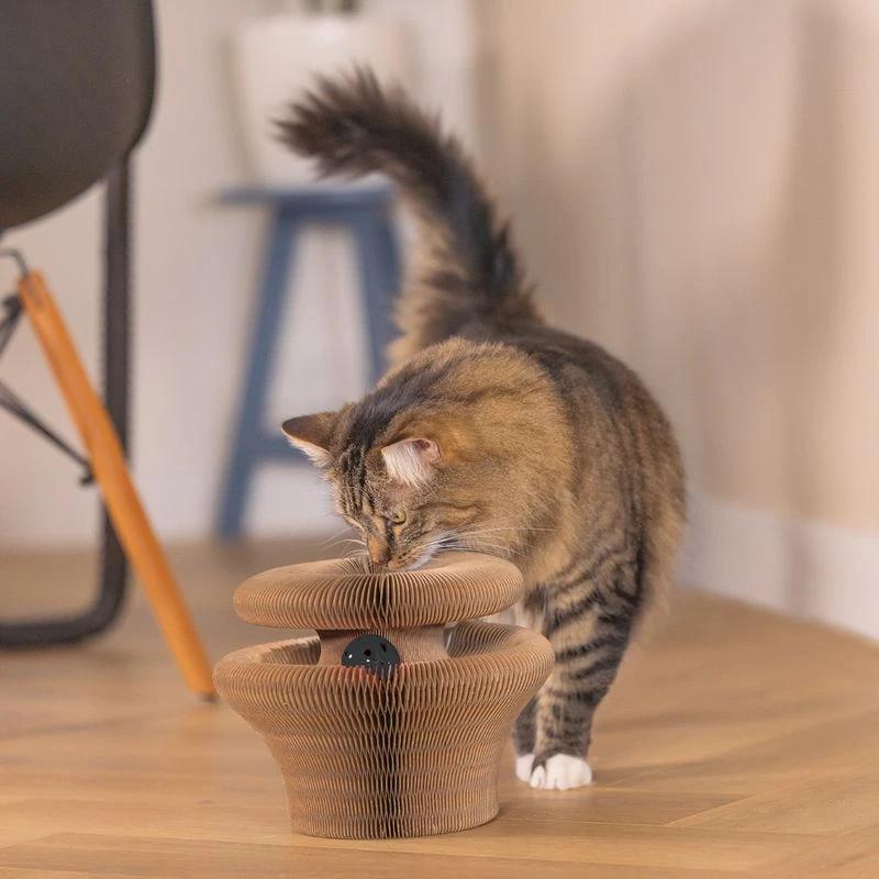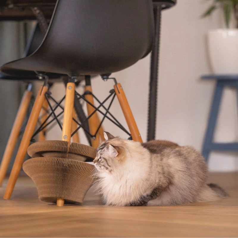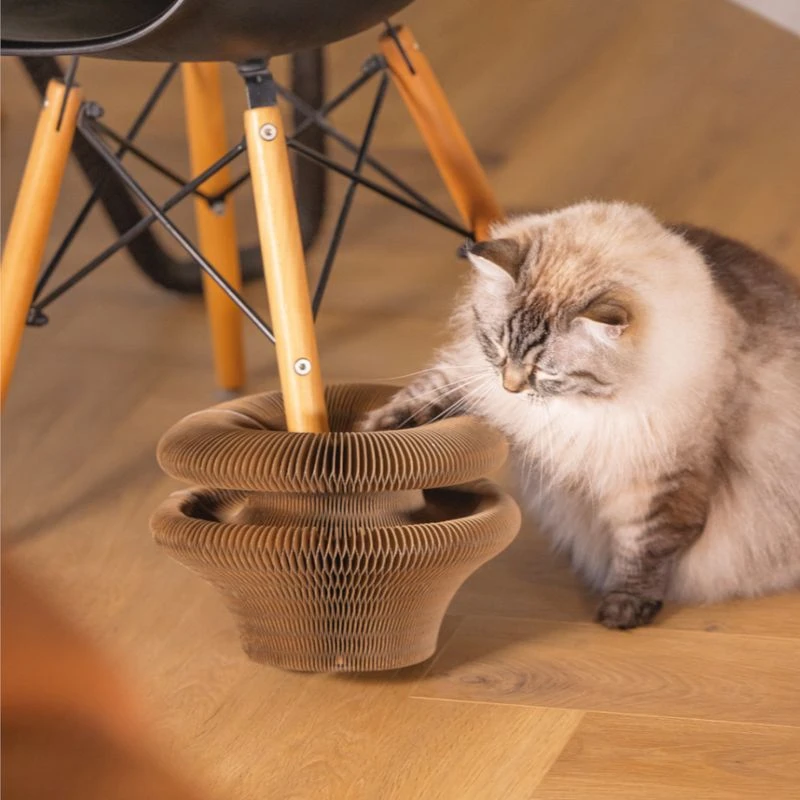 The Beeztees Scratching Toy Siep offers your cat hours of entertainment and is good for its claw care at the same time. Made from environmentally friendly, recycled cardboard, this innovative toy can be twisted and bent into different shapes to provide ever new challenges. The central opening allows you to attach the toy to chair or table legs so that your cat can easily reach it and play with it.