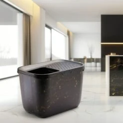 Savic Hop In Marble Cat Litter Tray Starter Set: Toilet Marble – Black-gold + 6 Bag It Up