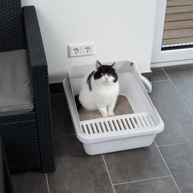Take one look at the TIAKI Dusty Rounded Cat Litter Tray and you’ll know that this is not just any cat litter tray, but a well thought-out oasis of well-being for your purring companions. With a built-in litter sieve in the step, this clever litter tray catches any annoying loose litter before it reaches the floor. The litter scoop that comes with the litter tray and is practically equipped with a hook is always ready to hand and ensures hygienic handling.