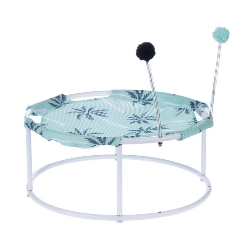 The TIAKI Palm Tree Sun Lounger with Pompoms offers your cat a perfect retreat on warm summer days. The unique palm tree design creates a tropical atmosphere and the hammock ensures maximum comfort. Thanks to the raised lying surface, your cat stays off the floor and enjoys the pleasant air circulation, while the cold and dampness of the floor is reliably kept out.