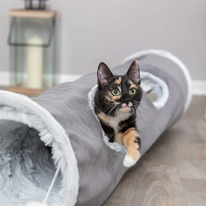 Thanks to the toys on the belt attached to the Trixie Harvey Play Tunnel, it won’t get boring easily and allows your pet to have a varied exercise and hunting programme. By the way, the exciting cat furniture is extremely stable dimensionally and the calm colouring in grey in combination with the fluffy look makes it a real enrichment for every home furnishing!
